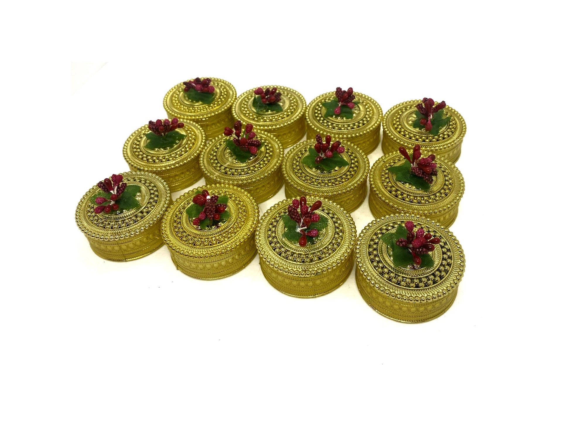 12li yuvarlak altın kutuda kına seti kırmızı çiçek kapaklı