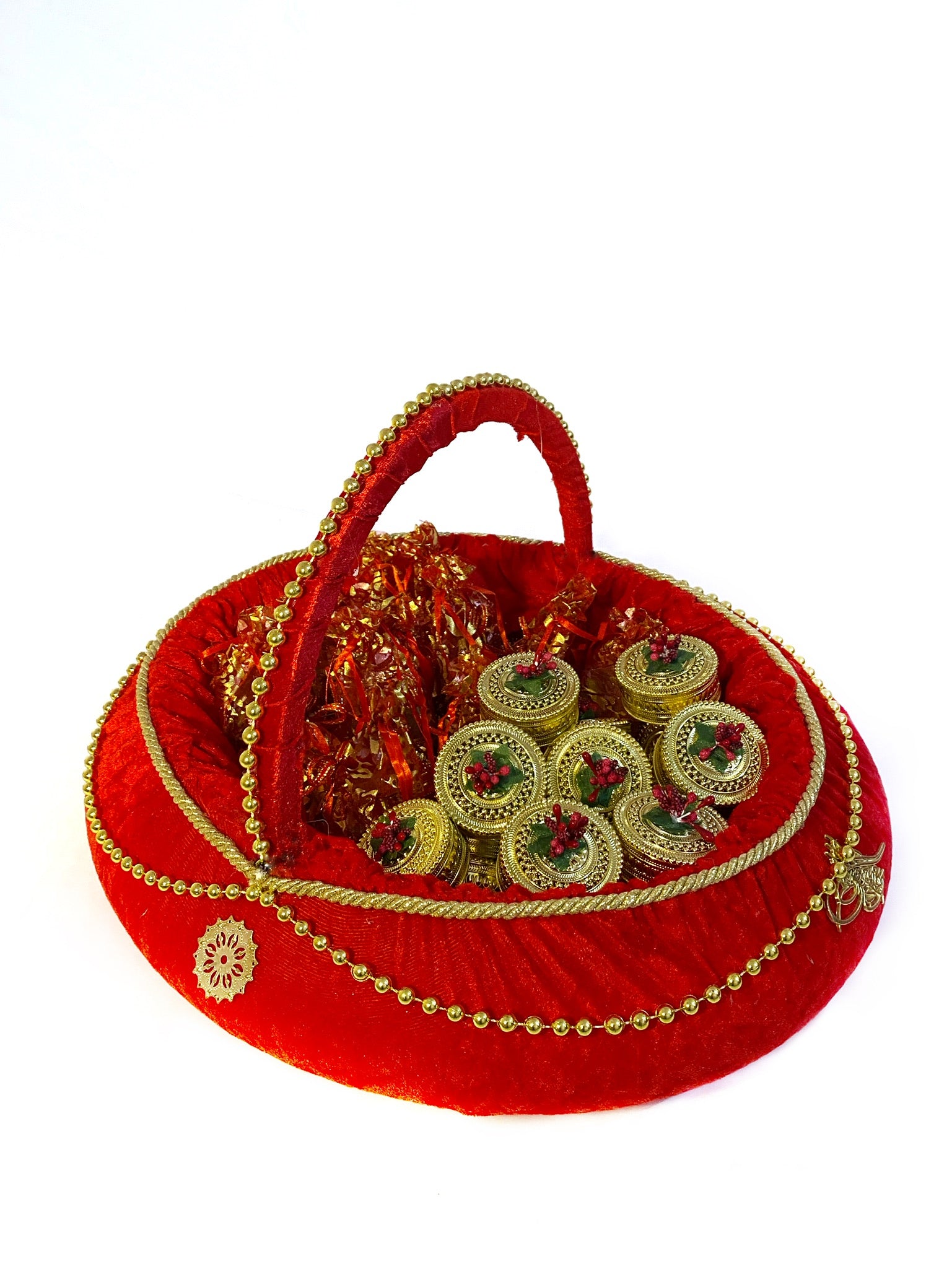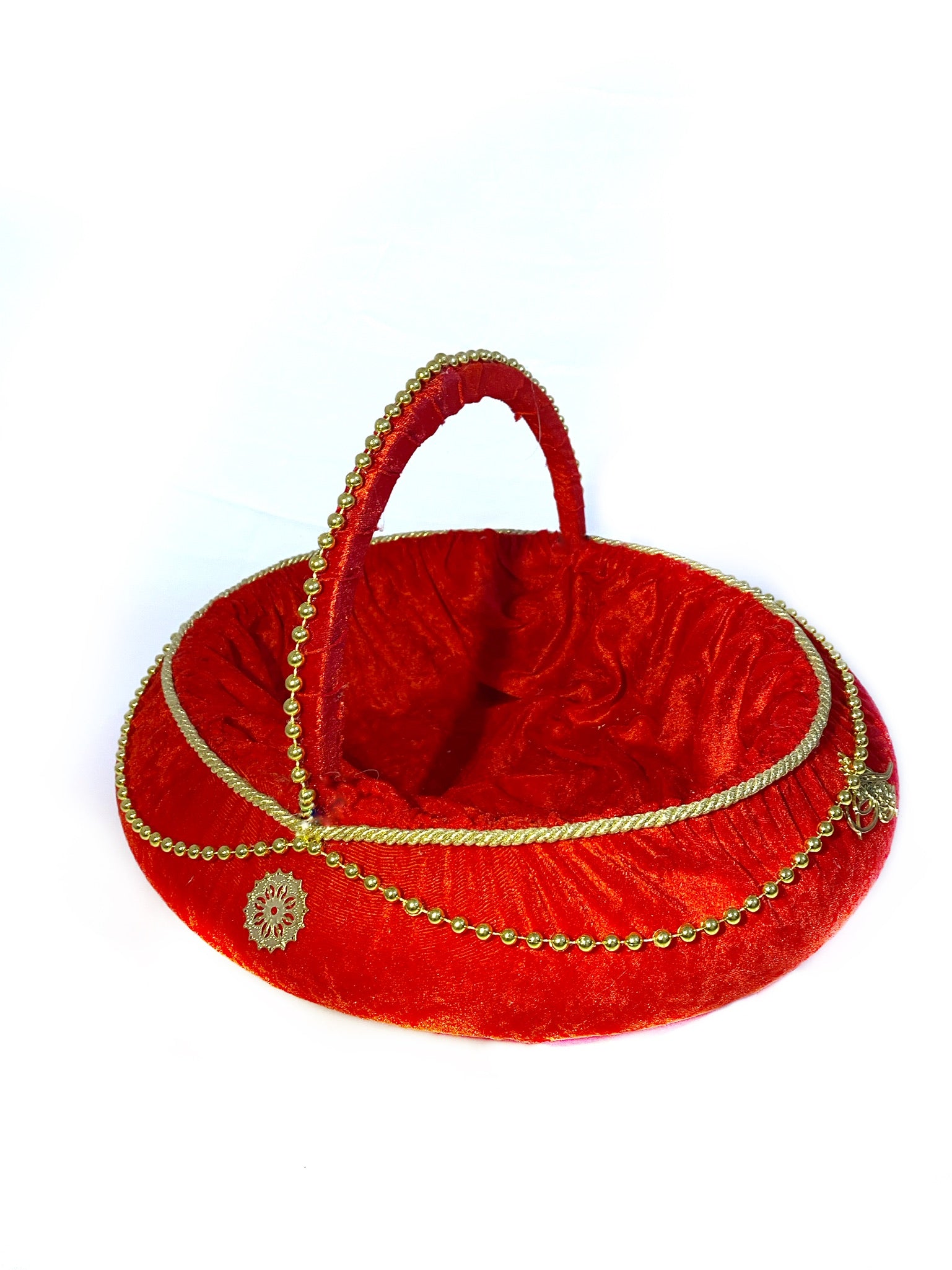 Kırmızı kadife metal işlemeli sepet tepsi seti