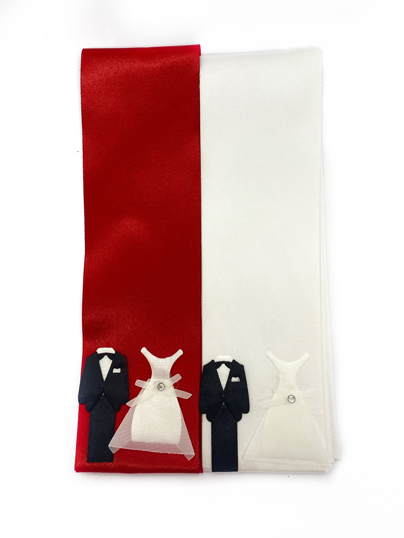 Kırmızı beyax damat gelin detaylı takı şeridi